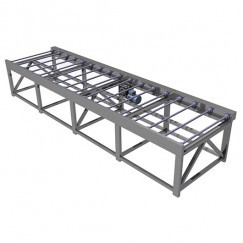 Рольганг завантажувальний призначений для переміщення, накопичення і завантаження партії наповнених касет, зібраних у пачки, у стерилізатор.